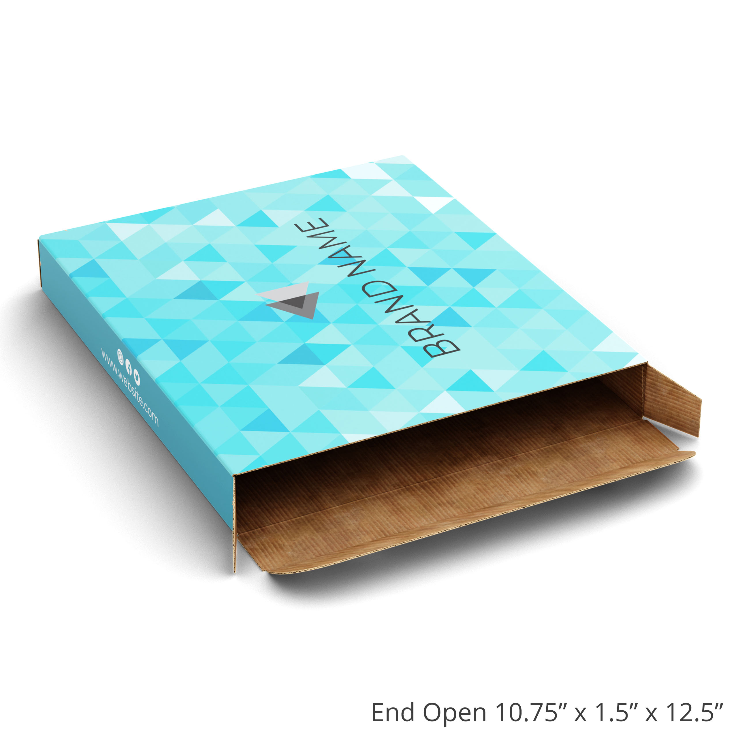 The custom-printed mailer for that flat or fold-flat item that is thin. This overnight style box sends your high-value documents in style. The tuck-tab end makes it easy to load items in and seal them with a single piece of tape.